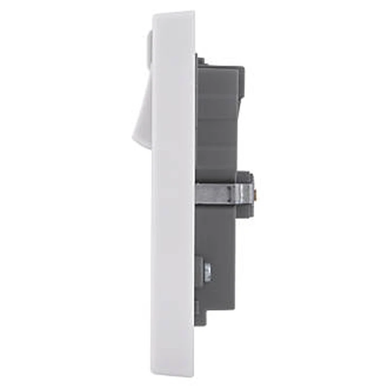 Technical Specifications Technical Specifications Multi combination switch/push button/socket outlet Type of fastening Mounting with screw Method of operation Rocker Material Plastic Mounting direction Horizontal Mounting method Flush mounted Colour White Nominal voltage 230 V Rated current 13 A Number of poles 1 Depth of device 10 mm Width of device 146 mm Height of device 86 mm