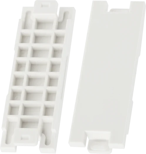 Blank module for empty ways on a BG Consumer Unit · · · Suitable for metal consumer unit · · Din Rail Mounted · · Cover blanks for unused ways in consumer unit · · Clip on to the cover, making the consumer unit touch safe · · Plastic material with white finish · · Easy to use