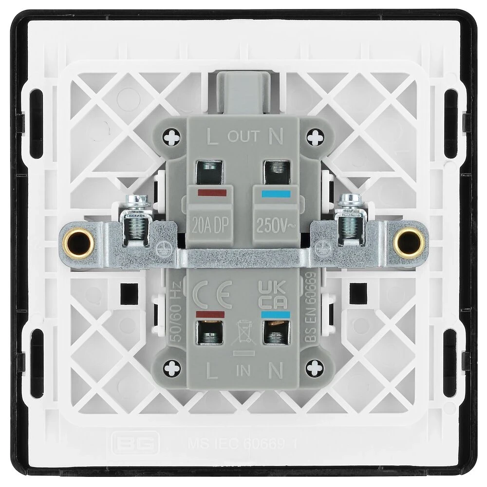 BG Evolve, Matt Black, 20A Double Pole Switch with LED Indicator