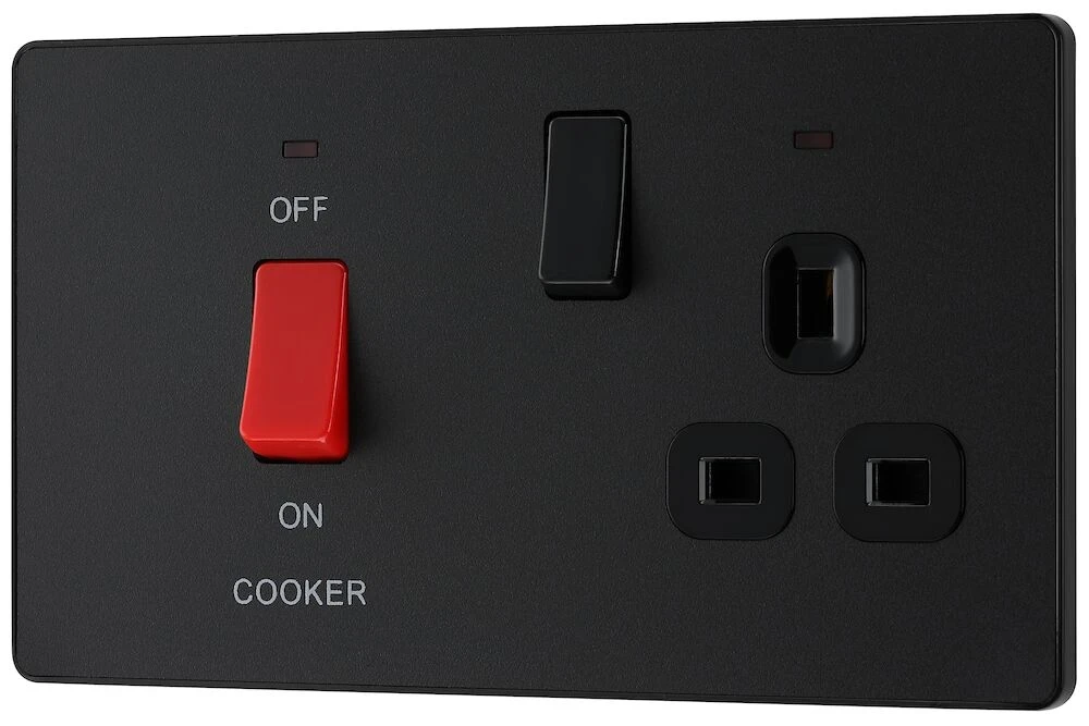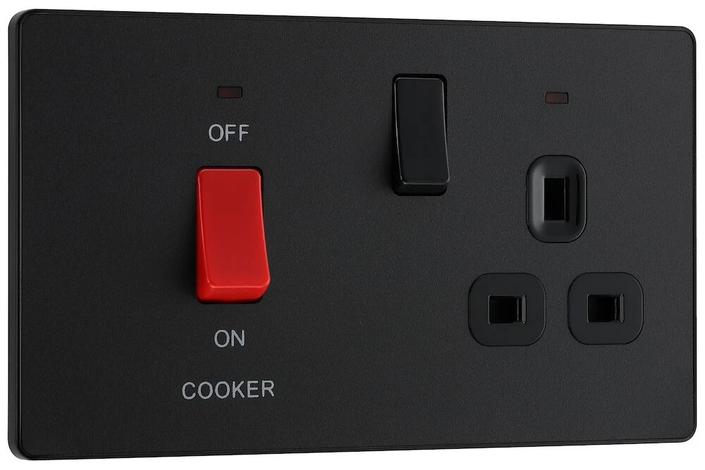 BG Evolve, Matt Black, 45A Cooker Control Unit With 13A Socket and LED Indicators
