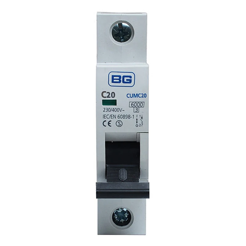 BG Miniature Circuit Breaker is a range of thermo-magnetic, current limiting MCBs available with type C operating characteristics, which provides overload and short circuit protection. The MCB has a positive contact status indicator, that is when green window is visible this indicates that there is a 4mm contact gap. · · · Stylish modern profile, matches all other BG devices · · Positive contact status indicator · · Lockable dolly switch · · Large terminal capacity · · Certified to EN/IEC 60898 standards
