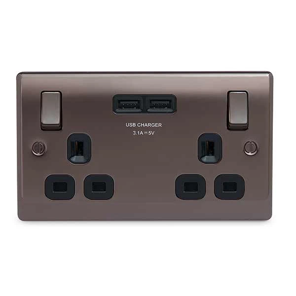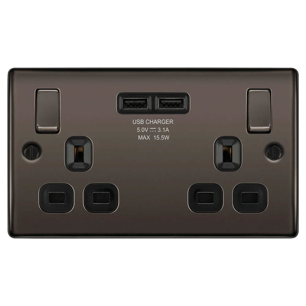 BG Nexus NBN22U3B Black Nickel 13A 2 Gang Switched Socket + 2 USB