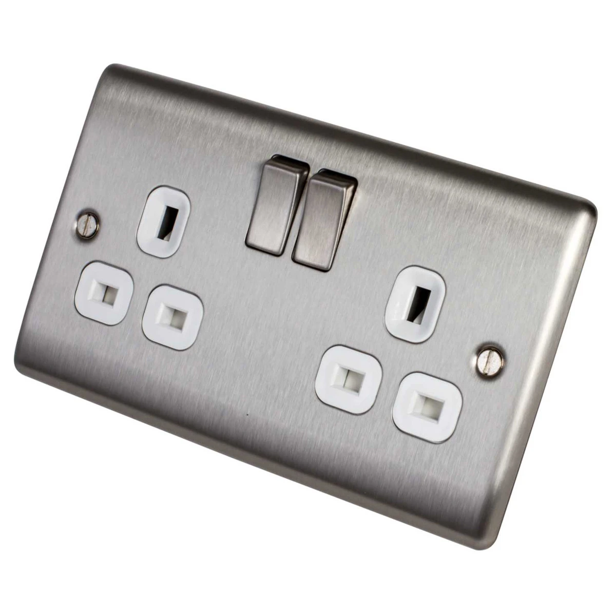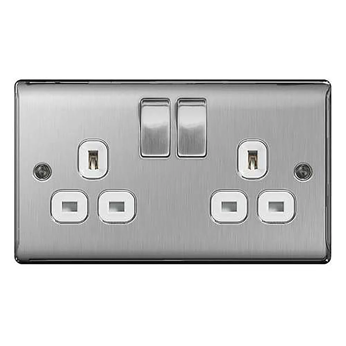 BG Nexus NBS22W Brushed Steel Switched Socket 2 Gang 13A with White Insert