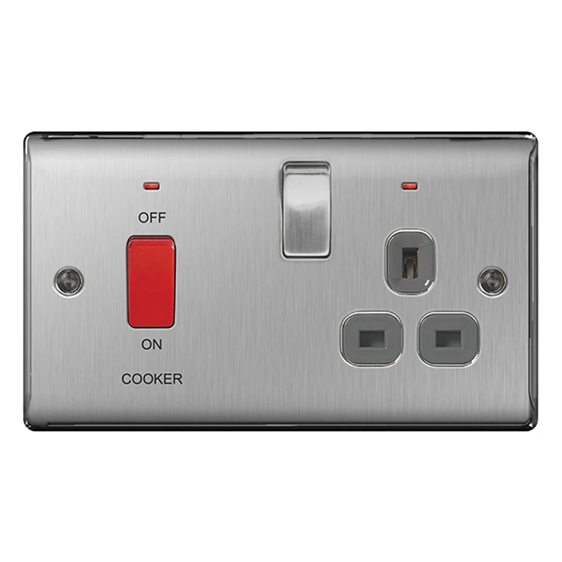 BG Nexus NBS70G Cooker Control Unit Brushed Steel Neon 45A with Grey Insert