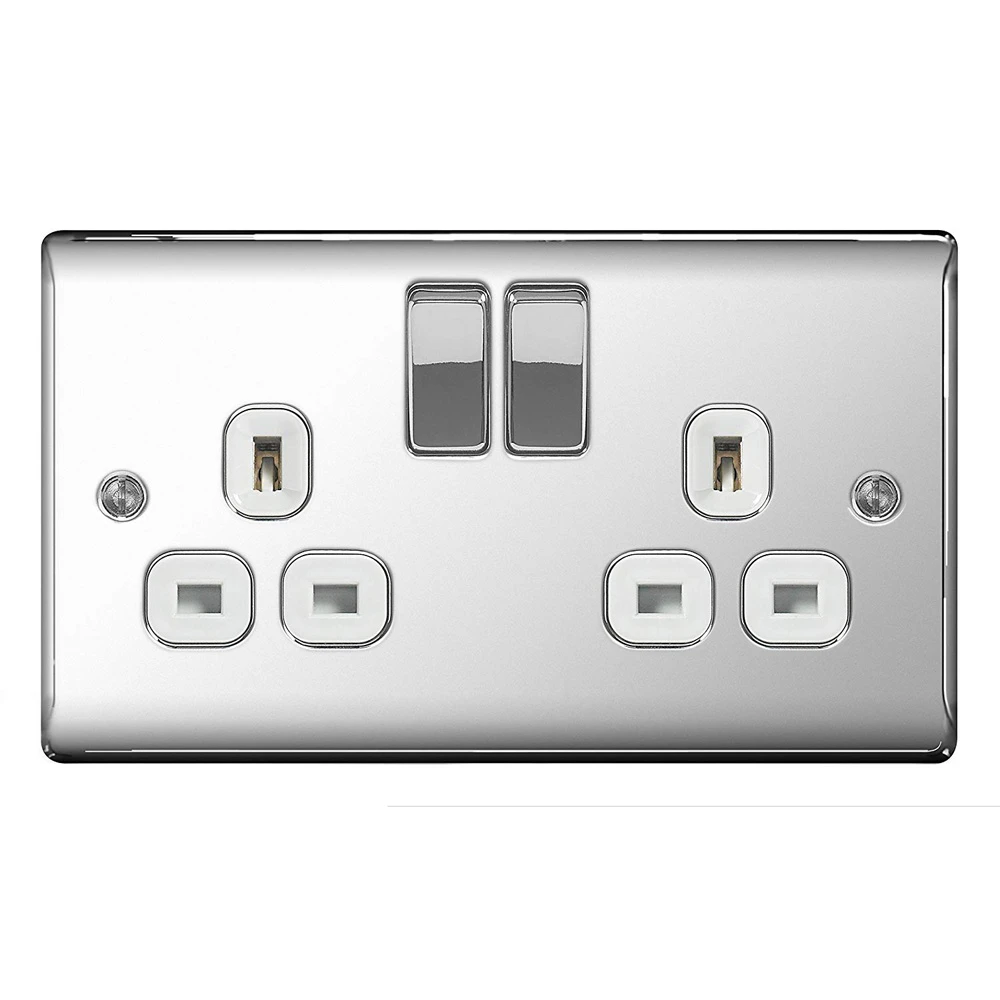 BG Nexus NPC22W Switched Socket Polished Chrome 2 Gang Double Pole 13A