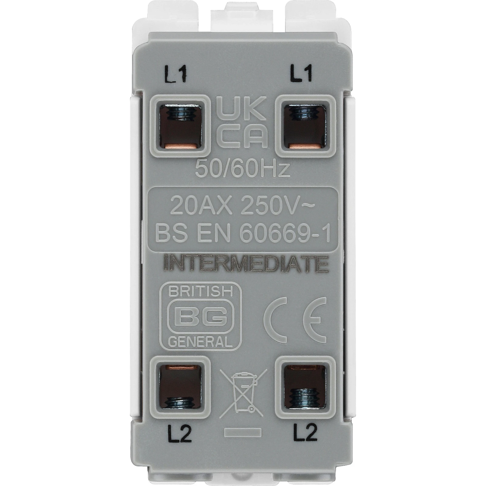 New BG Nexus Grid, NOT compatible with older BG gridswitch. Matches the DesignaPro range of decorative accessories · · · Clearly marked terminals with backend out captive screws for easy installation · · 20 Amp, 20AX inductive rated · · Manufactured to BS EN 60669-1 · · Minimum mounting box depth 25mm