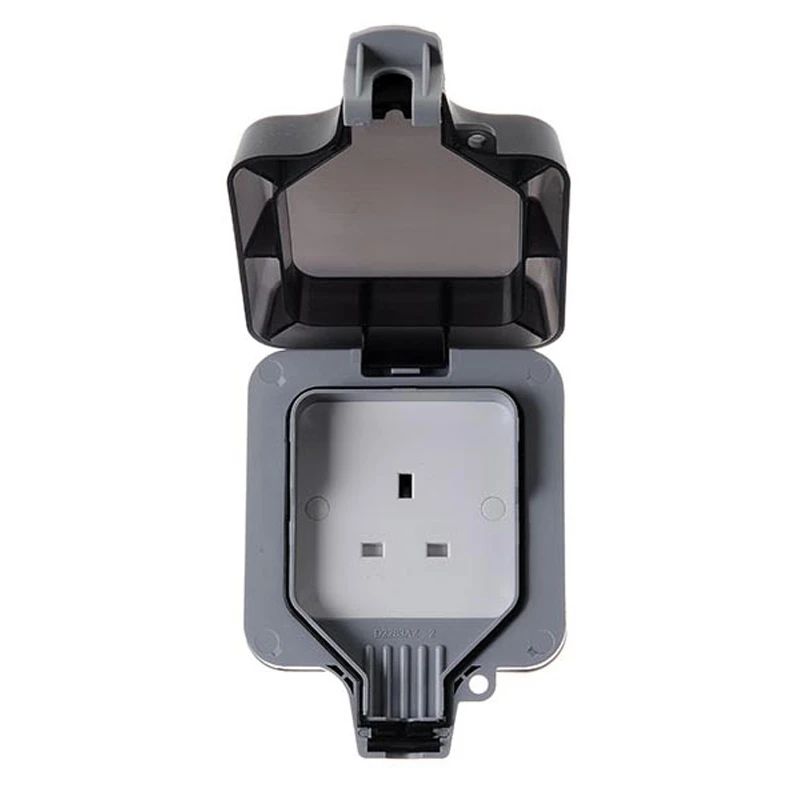 Technical Specifications  Technical Specifications Socket outlet Material Plastic Colour Grey Mounting method Surface mounted Degree of protection (IP rating) IP66 Model British Standard Nominal current 13 A Width of device 111 mm Height of device 154 mm Number of switchable socket outlets 0 Depth of device 80 mm · Technical Data Sheet – Click to Download · Manual: https://asset.eezybridge.com/ad7e7626-8f4a-4edb-b78d-9ca040e321dd/2316530