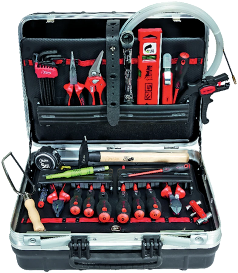 Technical Specifications Technical Specifications Tool set Number of cable cutters 1 Number of fork spanners 0 Number of crosshead screwdrivers PH 2 Number of guiding drills 0 Number of wood borers 0 Number of HSS spiral drills 0 Number of coaxial tools 0 Number of pliers 3 Number of socket inserts 0 Number of hole edge core drills 0 Number of finishing tools glass fibre cable 0 Number of hole saws 0 Number of slotted screwdrivers 4 Number of ring spanners 1 Number of crosshead screwdrivers PZ 2 Number of tommy bars 0 Number of ratchets 0 Number of bit inserts 0 Number of hexagonal keys 9 Number of open-end spanners 0 Number of Torx screwdrivers 0 Number of socket spanners 0 Number of adjustable wrenches 0 Number of measuring tools 0 Number of testing tools 1 Number of combination spanners 0 Number of step drills 0 Number of files 0 Number of stone drills 0 Total number of tools 24 Number of chisels and punches 0 Number of multifunctional tools 0 Number of hammers 1 Number of saws 1 Heating- + sanitary mechanic set No Electrician set Yes · Technical Data Sheet – Click to Download