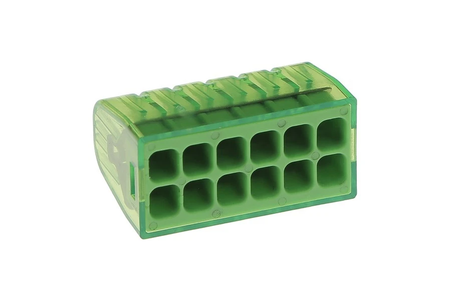 Bizline Christa’l Push-in Wire Connector 12 Way 24A for upto 2.5mm Cables – Green – Pack of 25