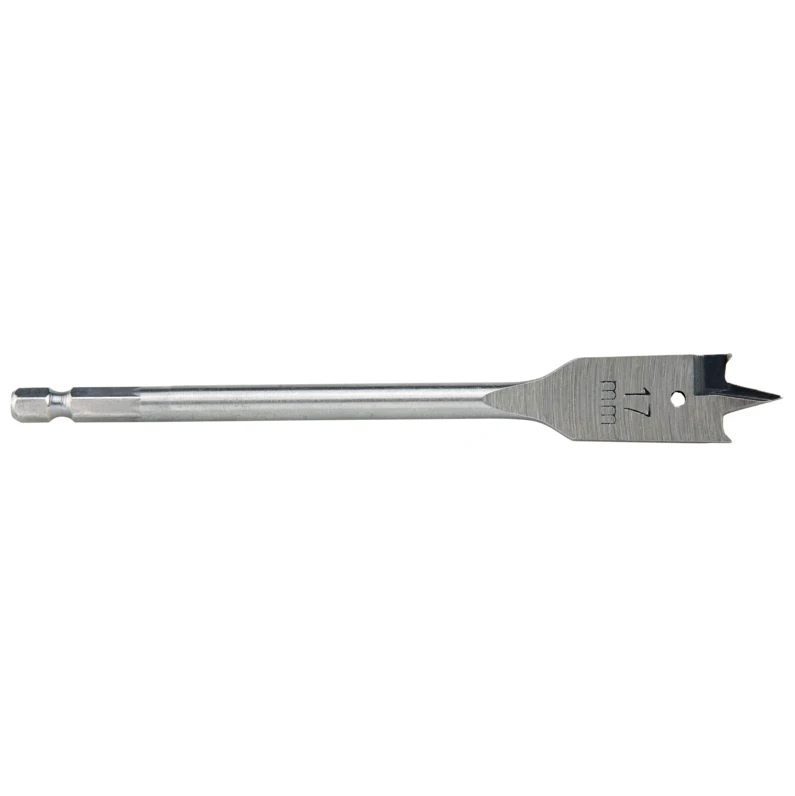 Flat wood drill bit 17 x 152 mm perfectly suited for drilling hard and soft wood types. Hexagonal fitting. Plus points: sharpened tips and points for accurate drilling dimensions. · · · Hexagonal shank. · · Ideal for drilling hard and soft wood.
