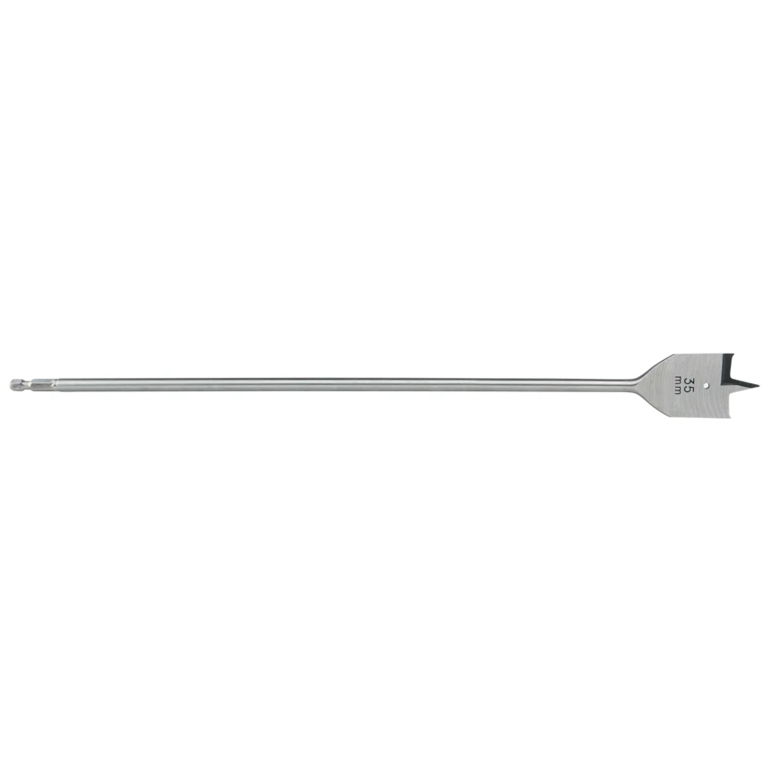 Flat wood drill bit 35 x 400 mm perfectly suited for drilling hard and soft wood types. Hexagonal fitting. Plus points: sharpened tips and points for accurate drilling dimensions. · · · Hexagonal shank. · · Ideal for drilling hard and soft wood.