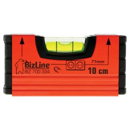 Mini magnetic spirit level 10 cm with bubble machined in an impact-resistant acrylic block. Fits in the pocket. Shock-resistant end caps. Magnetic. Plus point: hole marking every 71 mm according to DIN 49075. · · · Aluminium body · · Machined vial in impact-resistant acrylic block · · Fluorescent high UV-resistance liquid · · Impact absorbing end pieces · · Magnetic