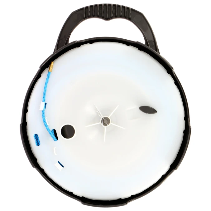 Polyester mono cable puller 30 m 4.5 mm with housing for pulling cables in ducts from 20 to 50 mm, even if they are obstructed. Interchangeable end caps. Ideal for distances up to 30 m. Very good rigidity and no form memory. · · · Triple-twisted polyester. · · Hexagonal crimping. · · Includes: · · Rigid head with screwed pulling eye, M5 6 mm. · · Screwed pulling eye, M5 6 mm. · · Casing included (BIZ 760 058). · · For pulling cables through 20 to 50 mm diameter ducts, even if congested. · · Ideal for distances up to 30 m.