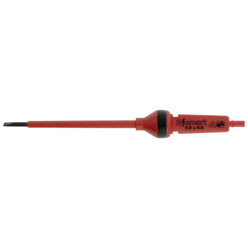 Technical Specifications Technical Specifications Screwdriver for slot head screws Grip design 1-component Model Straight Square drive/hexagon drive None Type of shaft Round Total length 174 mm Blade length 100 mm Blade diameter 6 mm Blade width 4 mm Low spark model No Precision model No Square drive/hexagon drive over the whole blade No VDE tested Yes Isolation protection 1000 V Yes Antimagnetic No Insulated Yes Blade thickness 0.8 mm Continuous blade No Clamp feature No Bulged blade No Cap rotatable No With striking cap No With anti-roll protection No · Technical Data Sheet – Click to Download