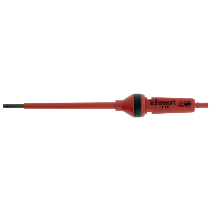 Technical Specifications  Technical Specifications Torx screwdriver Grip design 1-component Blade length 100 mm Size (TX) 15 Blade diameter 6 mm Total length 174 mm Insulated Yes Isolation protection 1000 V Yes With bore hole No Cap rotatable No VDE tested No VDE tested Yes With anti-roll protection No Continuous blade No · Technical Data Sheet – Click to Download