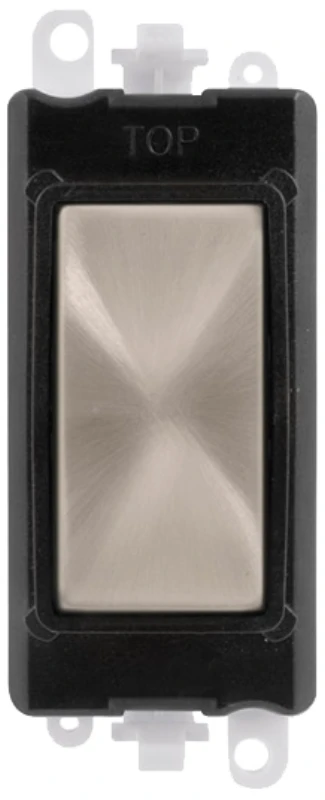 Gridpro black frame blank brushed stainless module. · · · Dimensions 24.5mm (W) x 50mm (H) x 12mm (D) · · Aperture Dimensions 20mm (W) x 35mm (H) · · Module Frame Finish Black · · Module Finish Brushed Stainless · · Body & Insert: Nylon · · Insert Cover: Stainless Steel · · Operational Temperature -5°C to +40°C · · Warranty 10 Years