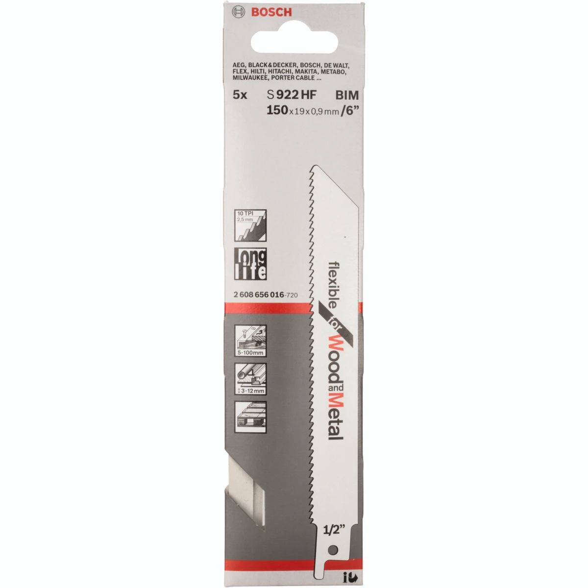Bosch S922HF BIM 150mm Reciprocating Saw Blades Flexible For Wood/Metal – 5 Pack