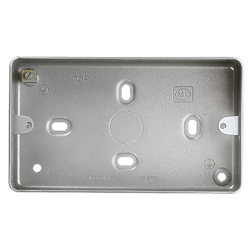The MK K830ALM is a 2 Gang Aluminium, 38mm deep, Surface mounted back box. It is fitted with a brass earth terminal and a base knockout. It is not suitable for mounting Grid Plus modules or modular data/telecom modules. Suitable for the Metalclad Plus range. The MK Metalclad Plus Range is made from heavy gauge steel making it a very tough set of products. This means they are ideal use in factories, workshops, garages and sheds. · · · No. of gangs 2 · · Plain box with no knockouts · · Mounting type Surface · · With Earth Terminal