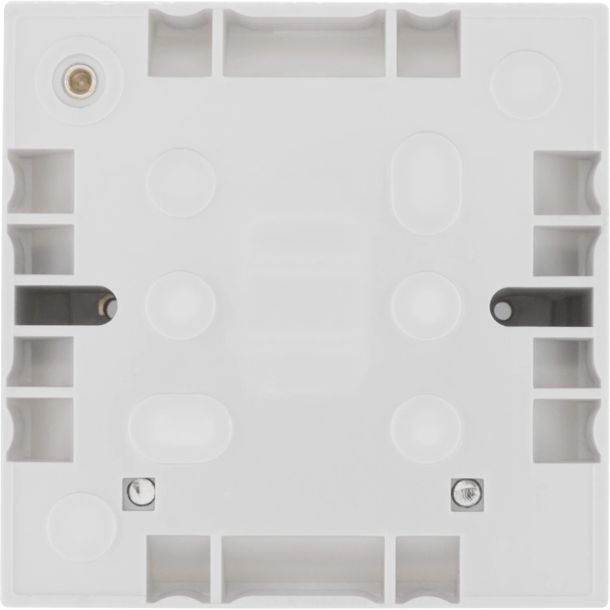 · · Manufactured according to BS 5733 standards. · · Multiple knockouts and earth terminal fitted as standard · · Spacers to provide greater clearance for installation wiring where shallow mounting boxes are used, an alternative to fitting a deeper box · · Fitted with earth terminal as standard · · Cord grip adjacent to bottom knockout, alternative position for when the box is mounted vertically