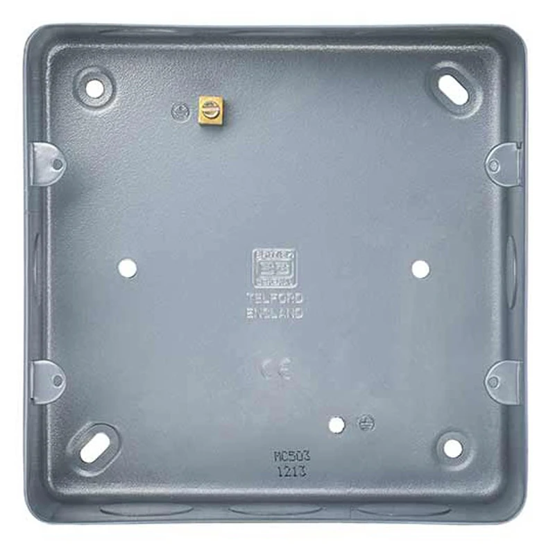 BG Nexus Grid Double Metal Box is a surface or flush mount with 6/8-gang grid. It is fitted with earth terminals. · · · Fitted with earth terminals