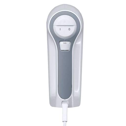 Non-slip handle ensures a steady, cushy and secure grip even at the highest speed. | Flexi cord outlet | Conveniently switch accessories with one press of the large button. | Adjust the speed dial from low to turbo with a flick of the thumb for better control and efficiency in preparing food. | 5 level variable speeds + turbo mode | Dishwasher safe | Accessories: 2 stainless steel whisks and 2 stainless steel dough hooks