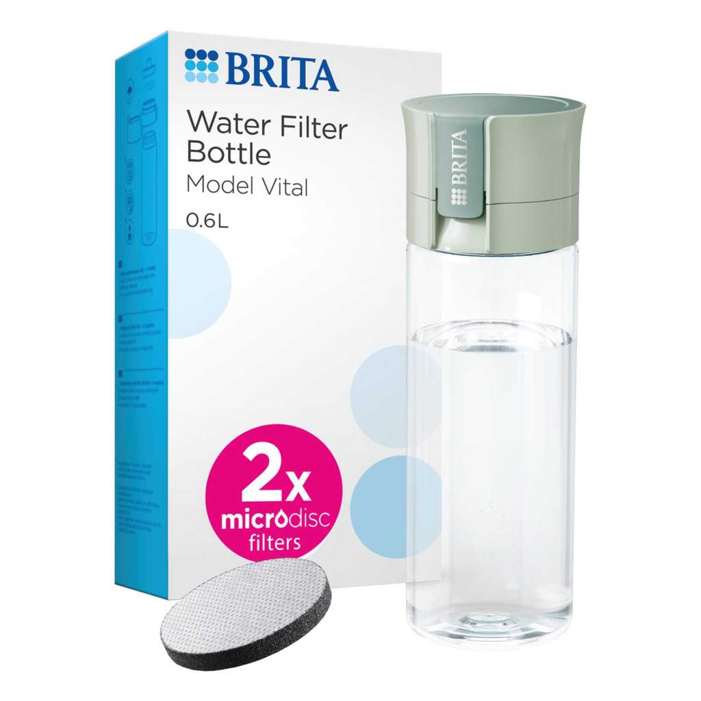 The integrated Micro Disc technology reduces chlorine, other taste impairing substances such as pesticides, herbicides and hormones and microparticles for pure tasting water | Includes 2 Micro Disc water filters | Can easily be refilled at any tap | Each disc is good for 60L or 1 month of freshly filtered water | Dishwasher safe up to 55°C | Leak proof