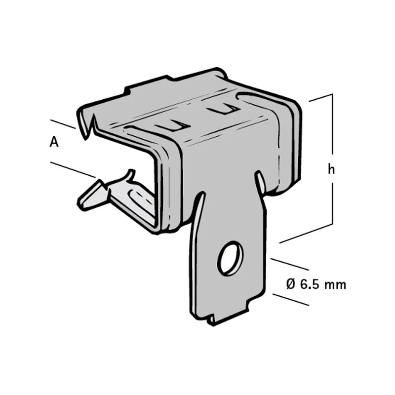 BC250 5mm to 9mm One Hole Beam Clip · · · For a solid fixing to steel construction without the need for welding or drilling · · With fixing hole (Ø 6.5 mm) to fix S-hook, bolt/nut, etc · · Made of spring steel · · With Delta-Tone 9000 surface