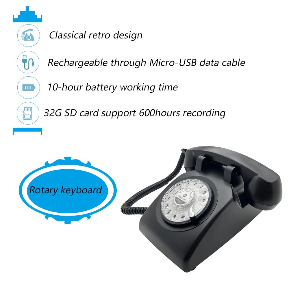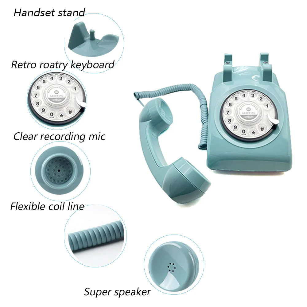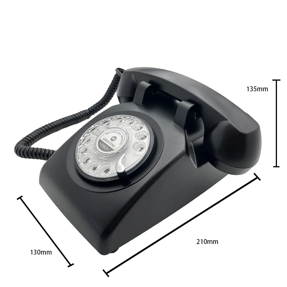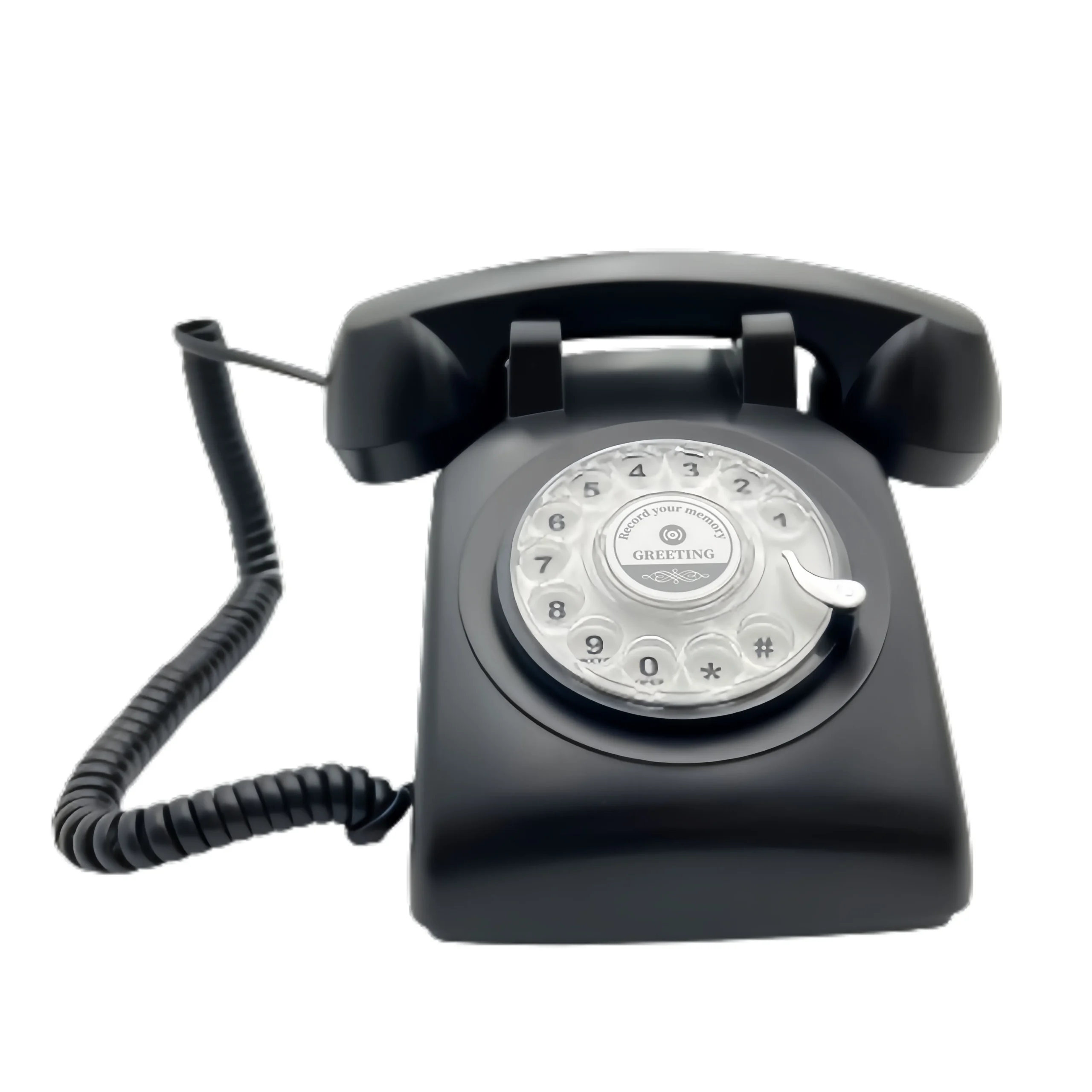 British Style Antique Corded Telephone with Black Pink Rotary Dial for Weddings & Guestbooks Audio Guests Feature