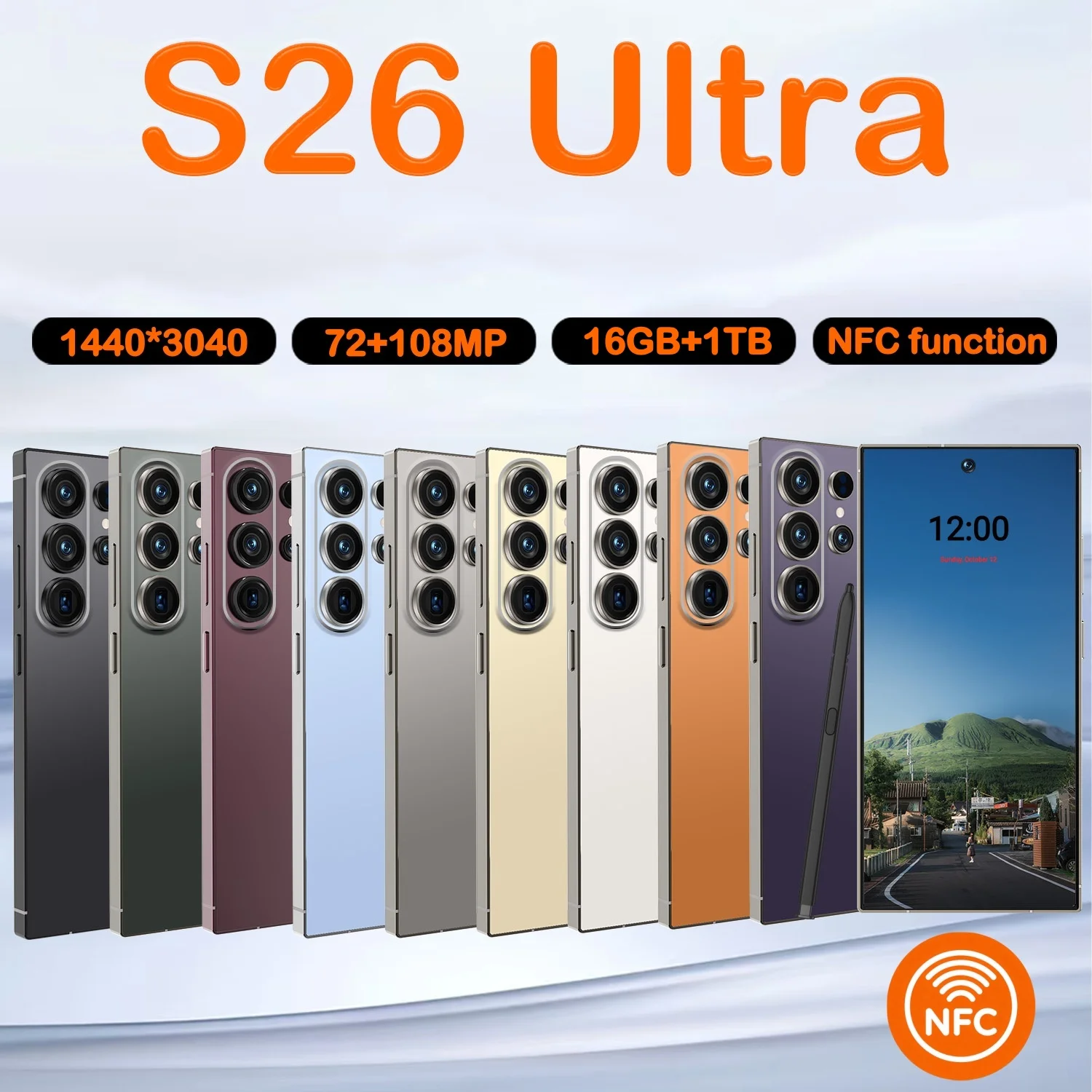 Budget Edition S26 Ultra 5G Smartphone 16GB+1TB Camera Unlocked Android Mobile Phone with NFC Face ID Fingerprint Dual SIM