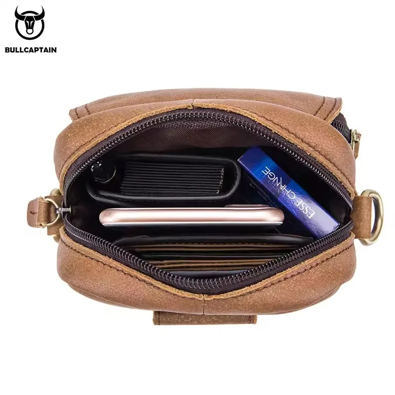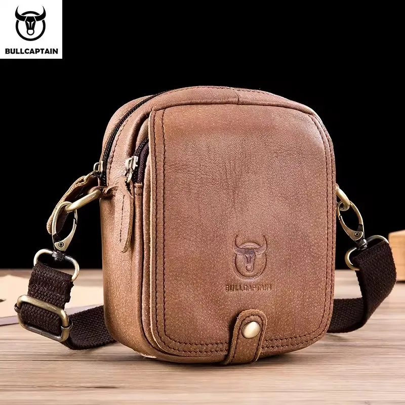BULLCAPTAIN High Quality Satchel Men Small Crossbody Bags Messenger Bag Genuine Leather Shoulder Bag Men Casual Male Belt Bag’s