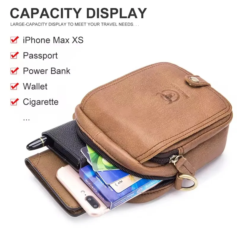 BULLCAPTAIN High Quality Satchel Men Small Crossbody Bags Messenger Bag Genuine Leather Shoulder Bag Men Casual Male Belt Bag’s Pack of 2