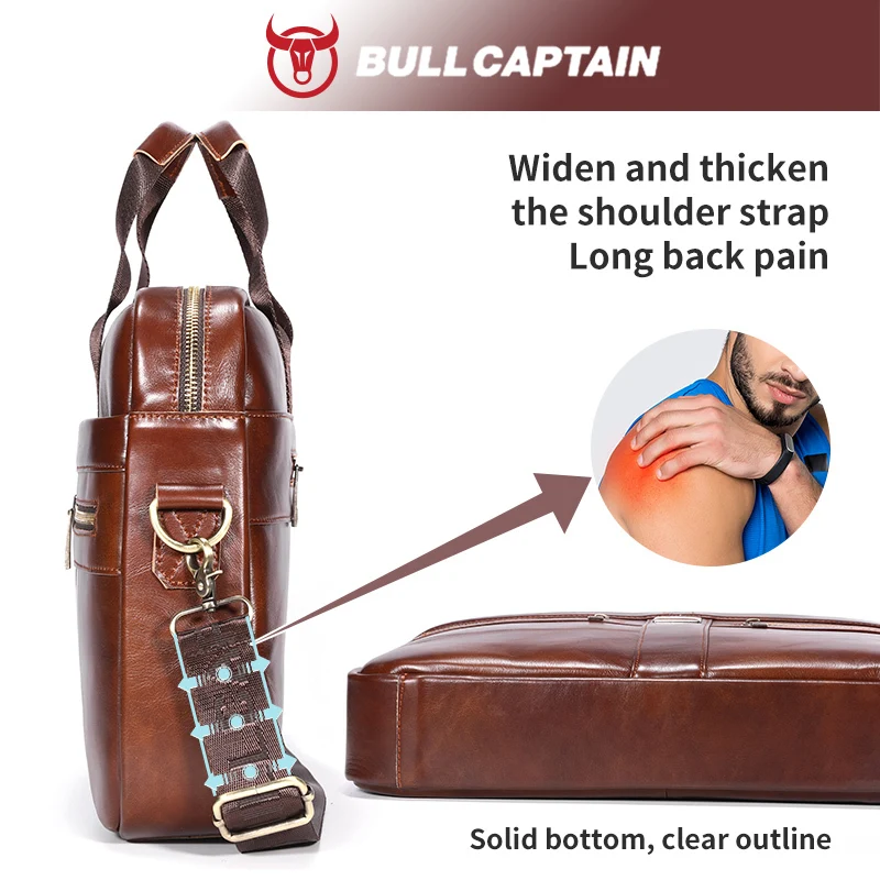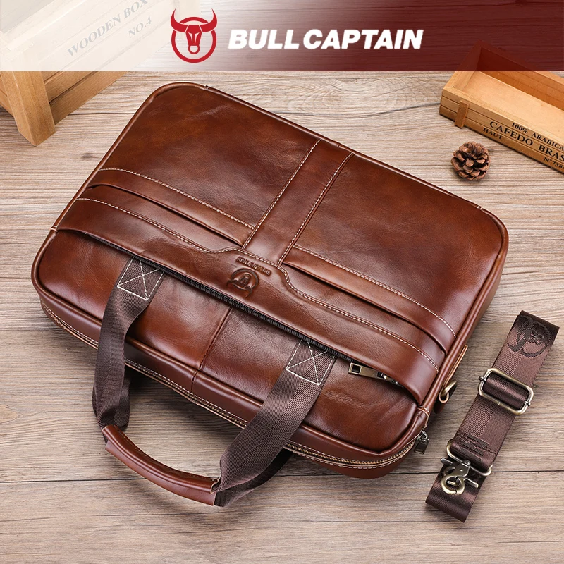 BULLCAPTAIN Men’S Leather Briefcase Large Capacity Multi-functional Casual One-shoulder Messenger Bag Laptop Bag