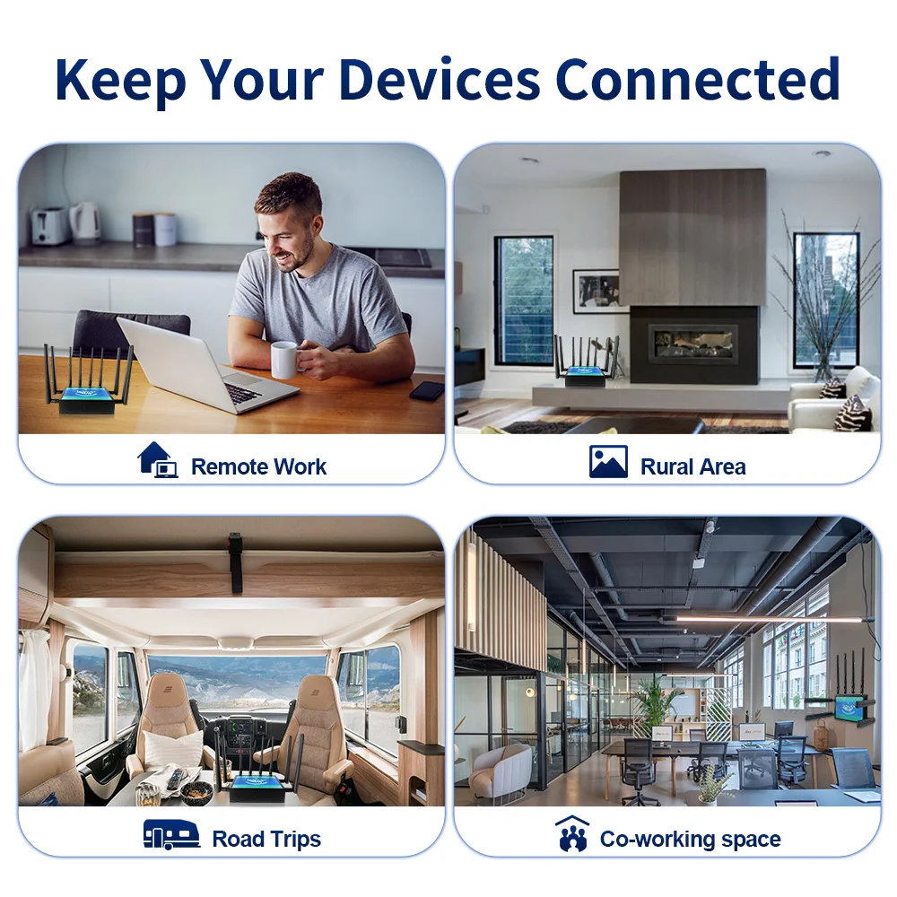 Bus Networking Dual SIM Router 5G Network 802.11ax Wifi6 4G LTE Cellular Modem Wi-Fi This product supports 5G SIM Card, and is backward compatible with 4G 3G SIM Card. 3G/4G/5G Frequencies Supported: 5GNR NSA: n1/ 3/ 5/ 7/ 8/ 20/ 28/ 38/ 40/ 41/ 71/ 75/ 76/ 77/ 78 5GNR SA: n1/ 3/ 5/ 7/ 8/ 20/ 28/38/ 40/ 41/ 71/ 75/ 76/ 77/ 78 LTE-FDD: B1/ 3/ 5/ 7/ 8/ 20/ 28/ 32/ 71 LTE-TDD: B38/ 40/ 41/ 42/ 43 WCDMA: B1/ 5/ 8 Recommend Products Best Selling Stock OpenWrt 21 Version MT7981B Enterprise Wireless Router Dual Band 2.4g 5.8g Wifi 6 1000mbps Max LAN Data Rate VPN Firewall.