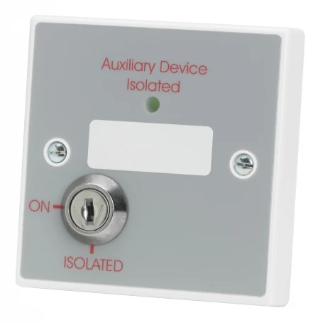C-Tec BF367 Auxiliary Device Isolator 1 Gang , CTEC , Allows a +24 VDC output from a fire alarm control panel to be remotely isolated to prevent autodiallers, water sprinklers, rollershutters, etc., from activating. Designed so that if monitoring is used on the +24 VDC output being controlled, a fault condition will show at the fire panel when the device is Isolated. Label includes a white write on area allowing installers to add equipment locations. Fits on standard UK 25mm flush or surface mount back boxes. · · · Activation current 10mA @ 27.6 VDC required to illuminate the amber Isolated LED · · Indicators Isolated LED. · · Connections OV; SW In; SW Out. · · Construction & finish White PVC plate; Grey label; Silver plated brass switch material. · · Operating conditions/temperature -10C to +60C. · · Switching Resistive load 3A @ 30V DC; Switching Inductive load 1.5A @ 30V DC; Non-switching current rating 5A Absolute Max.