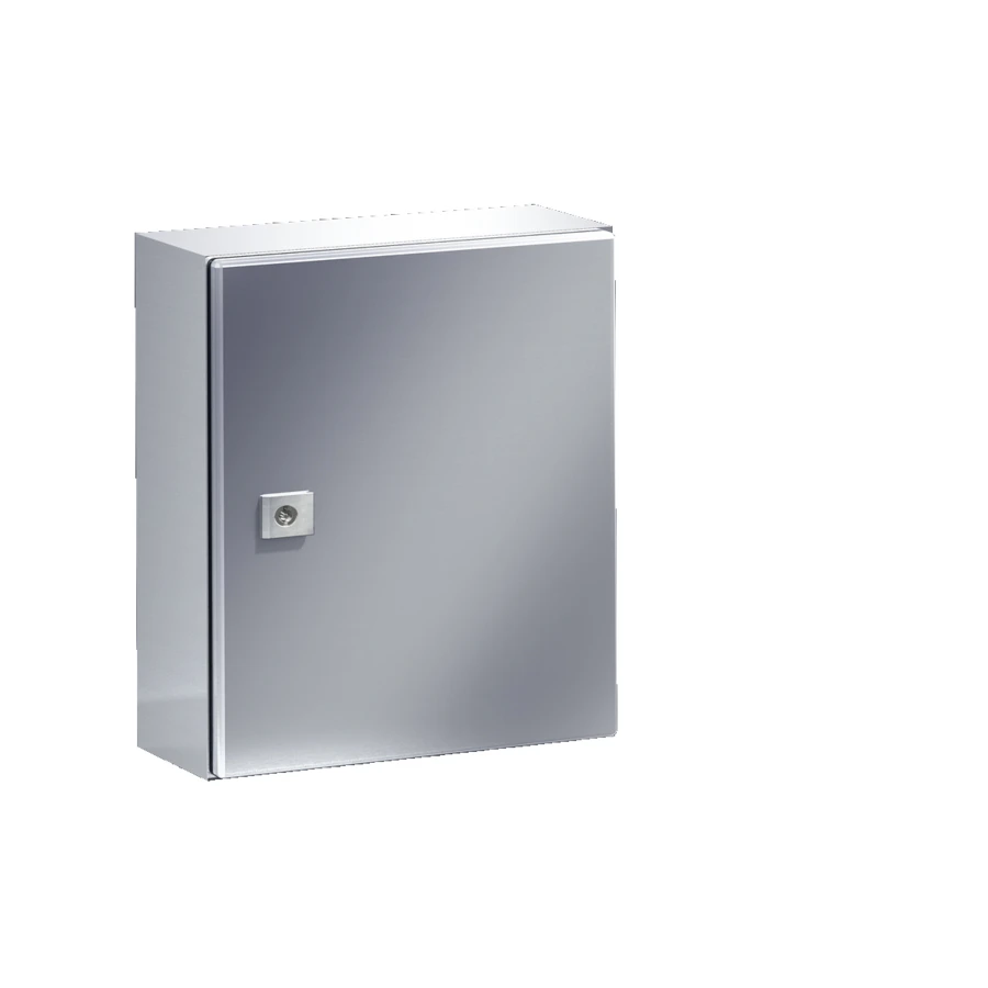 Technical Specifications Technical Specifications Enclosure/switchgear cabinet Material Stainless steel Impact resistance (IK rating) IK08 Degree of protection (IP rating) IP66 Colour Stainless steel Height 380 mm Width 300 mm Suitable for metrical mounting Yes With glazed door No Pitched roof No Tackable Yes Depth 210 mm Number of locks 1 Number of doors 1 Pole fastening Yes Wall fastening possible Yes Suitable for outdoor set-up No With ventilation door No With backside door No Mounting plate depth-adjustable No Floor installation possible No Suitable for wall built-in No EMC-version No With mounting plate Yes · Technical Data Sheet – Click to Download