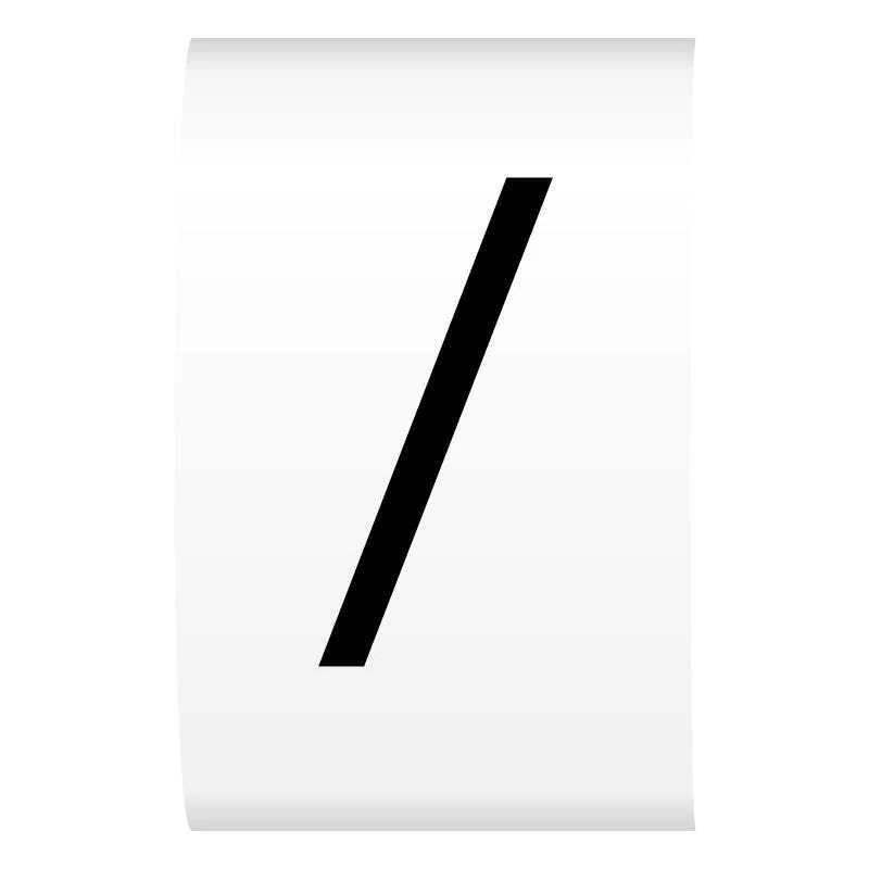 These black on white k-type tie-on cable markers are a versatile marking system for cables, cable bundles and conduit. The elliptical marker profile allows easy fitting to carrier strips, and contains large characters for good legibility. We offer four styles of carrier strips holding from 7 to 26 marks. These markers are supplied on reels and they are suitable for cable diameter 4.2-7.0mm. Cable markers on this reel: 500 of black on white k-type markers. Marking: / Forward Slash. We also offer K-type markers kits, including pick and mix kits or pre-made kits containing numbers, letters symbols and carriers strips. · · · Colour: Black on White · · Fixing Method: Tie-On · · For Cable Diameter (mm): 4.2 – 7 · · For Cable Size (mm²): 4.0 – 10.0 · · Style: Straight Cut
