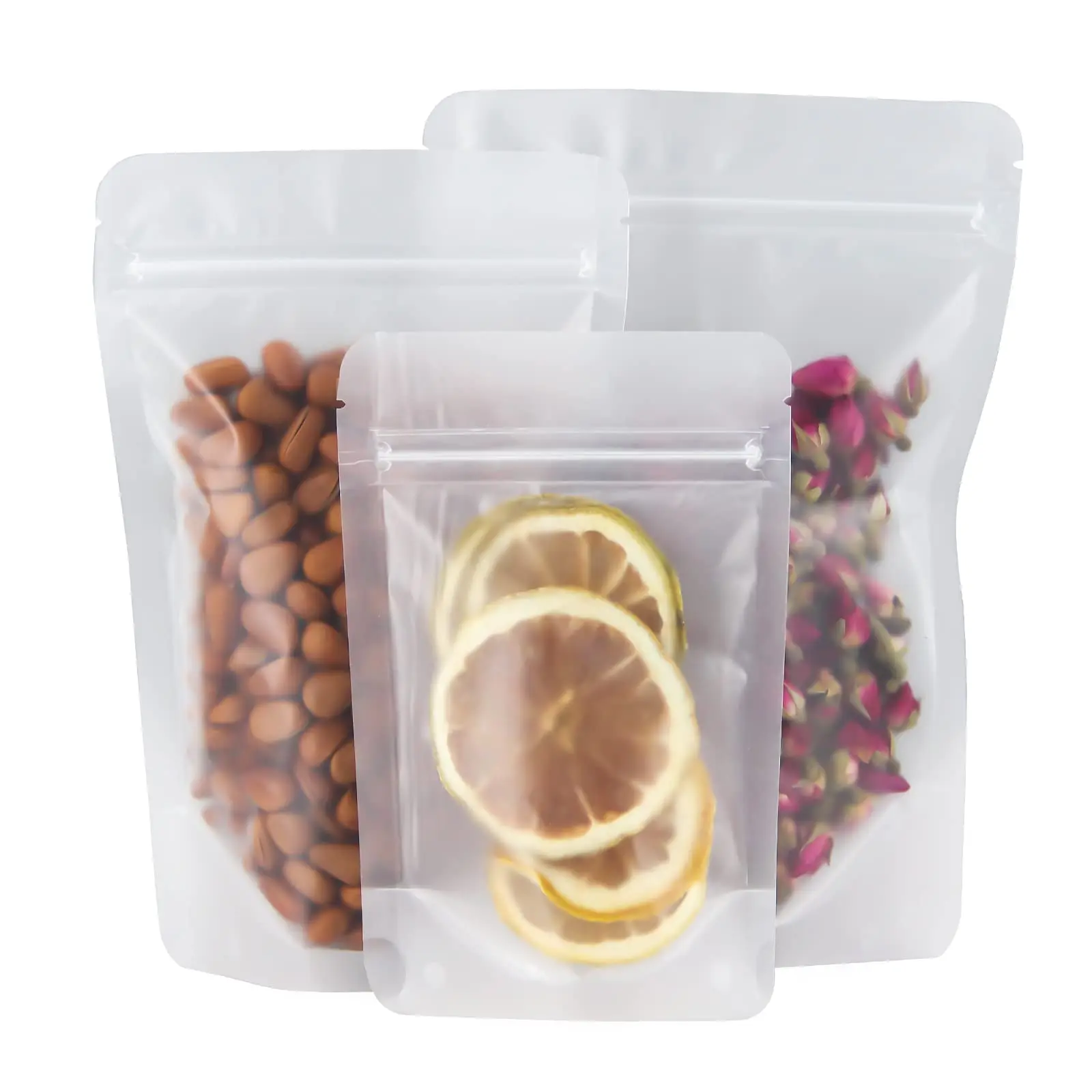 Cailyn Custom Reusable Stand Bottom Pouch Food Nuts Storage Pouches Clear ZipLock Self Sealing Transparent Packaging Bags