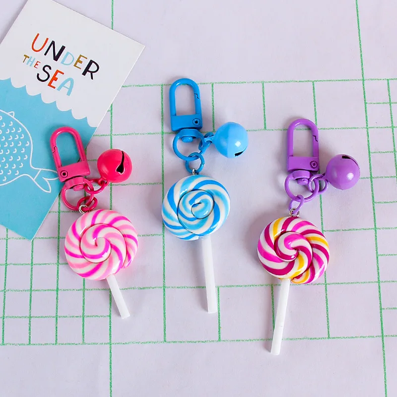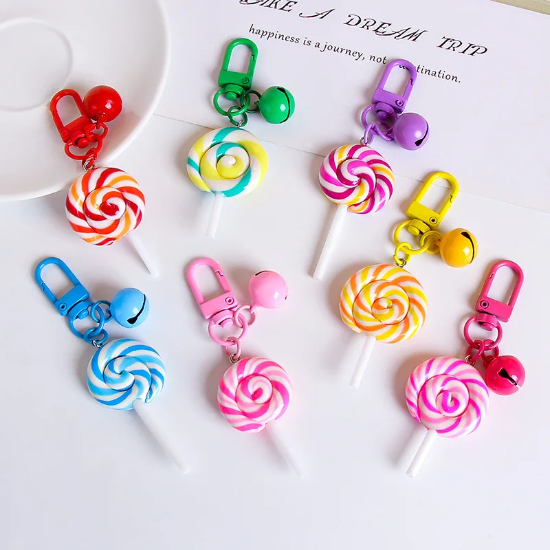 Candy Keychain Lovely Rainbow Lollipop Key Chain Polymer Clay Ornaments Bag Pendant Mobile Phone Lanyard Accessory