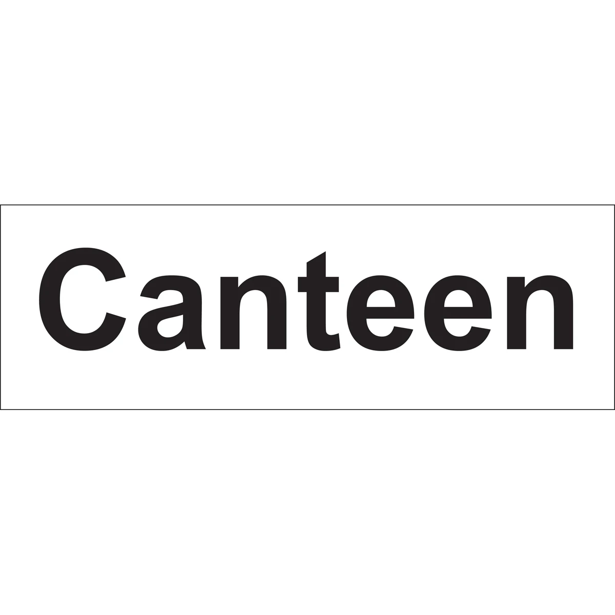 Door sign with “Canteen” written in black on a white background for easier viewing. · · · Self adhesive sign · · Black font on a white background · · High-quality digital printing · · Glossy Finish · · UV resistant · · Easy to install