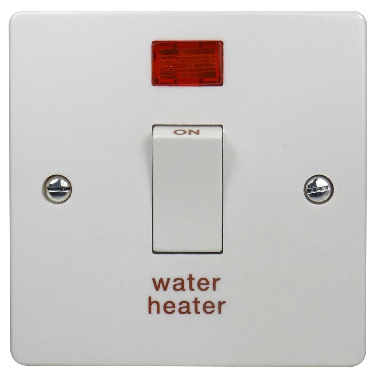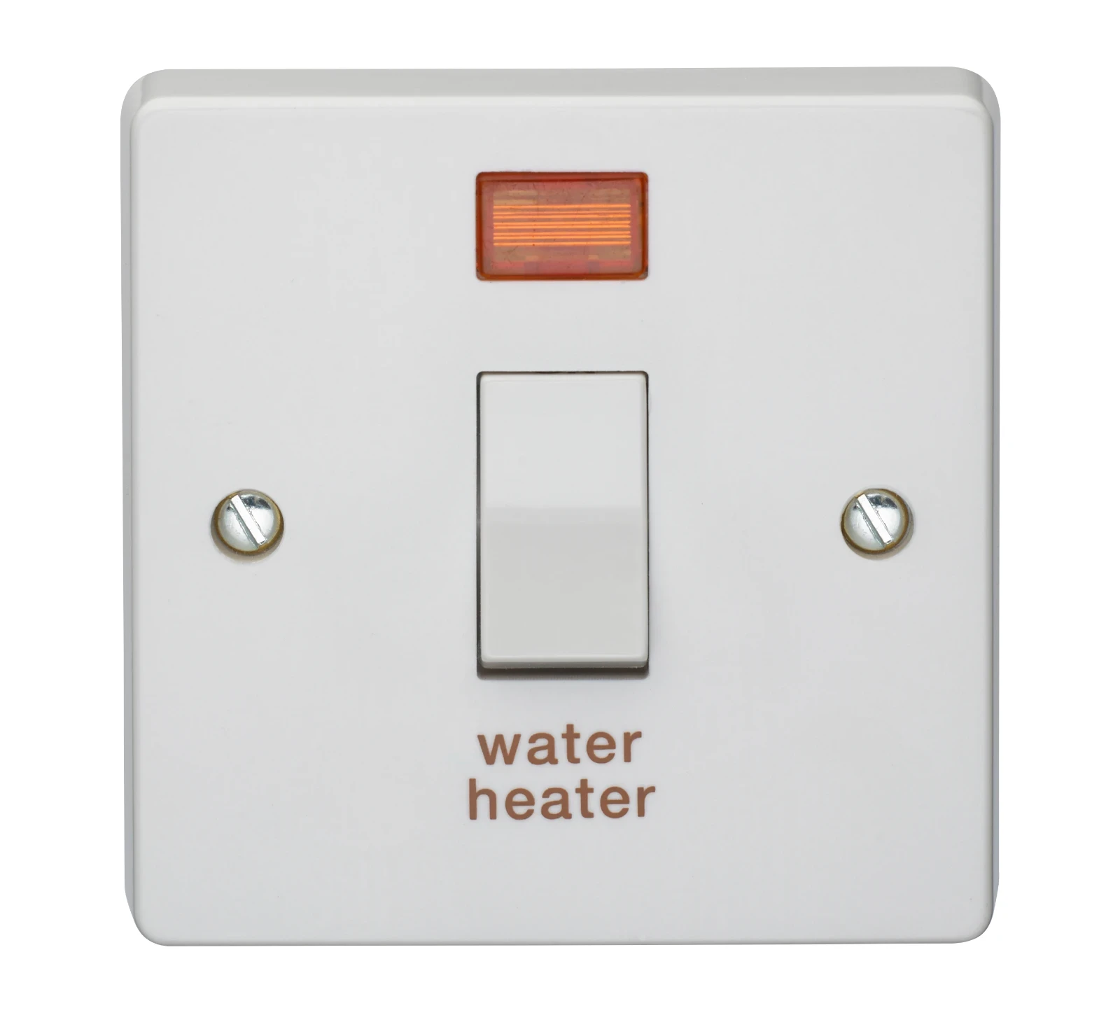 Capital Switch 1 Gang DP c/w Neon Marked Water Heater 20A White