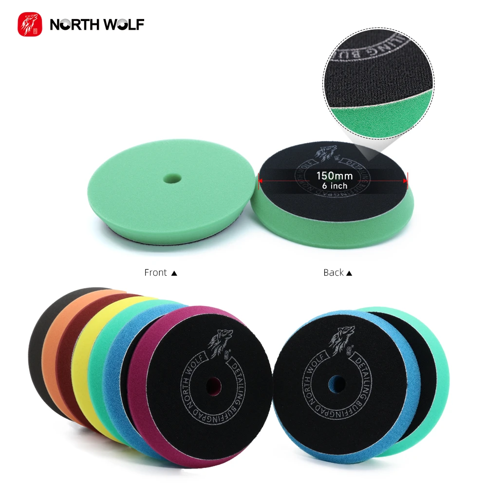 Product Description North Wolf Foam Buffing Pads, six colors sponge for heavy cut, medium cut, light cut and finishing. Foam pads should work with car polisher.