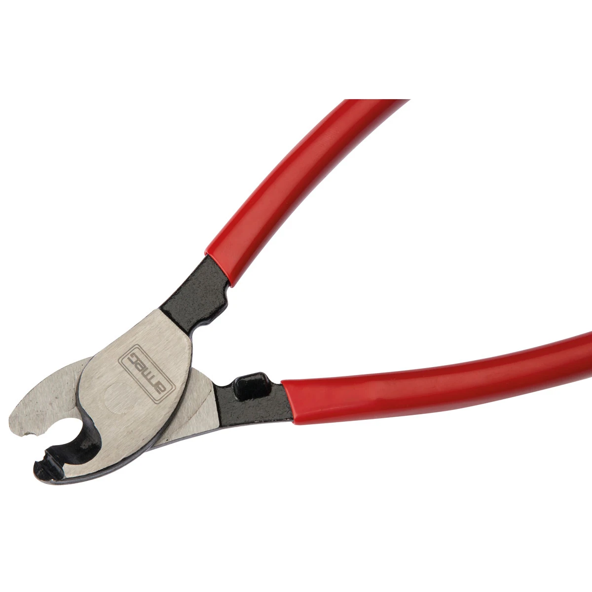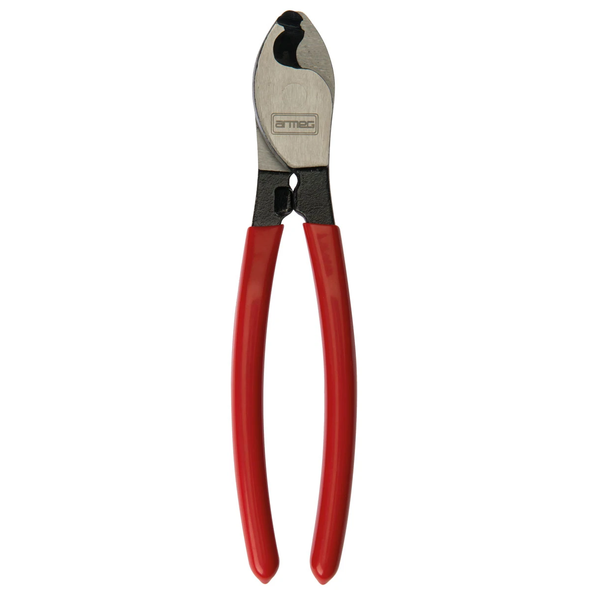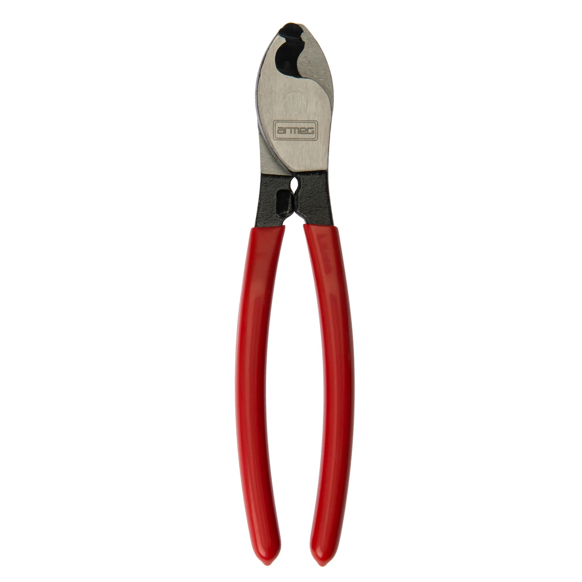 A cable cutter perfect for sharp and strong high performance cable cutting. Dual heat treatment process gives the optimum strength required at specific parts of the tool for excellent durability. Forged chrome vanadium body gives extreme strength with cutting edges that stay sharper for longer. It can be used to cut copper wire, plastic sheathed cable, aluminium wire, optical cable and co-axial wire · · · Sharp ground cutting edge rapidly cuts through wire and cable · · Milled and polished blade surfaces provide a smooth and easy to use tool · · PVC coated handles provide added grip and leverage for user comfort · · Not suitable for iron or steel wire · · Ideal for domestic, industrial, TV and satellite cable installation