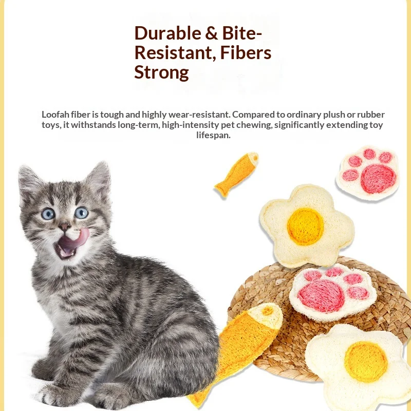Cat Stick Luffa Toy for Kitten Self-Relief Molar & Teeth Cleaning Intelligence Development Interactive Play Cat Supplies Pack of 5