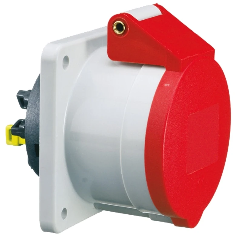 Technical Specifications Technical Specifications Panel-mounted CEE socket outlet Connection system Screw less terminal Material Plastic Degree of protection (IP rating) IP44 Voltage acc. EN 60309-2 400 V (50+60 Hz) red Angle of plug Straight Identification colour Red Contact material CuZn Surface finish contacts Untreated RAL number 3000 Amperage acc. UL/CSA (for UL-version) – A Drill hole distance horizontal 60 mm Drill hole distance vertical 60 mm Flange size horizontal – mm Flange size vertical 75 mm Number of poles 4 IEC-amperage 16 A Clock hour position 6 h Rated frequency – Hz Rated voltage – V Military model No · Technical Data Sheet – Click to Download · Technical Data Sheet – Click to Download · Technical Data Sheet – Click to Download