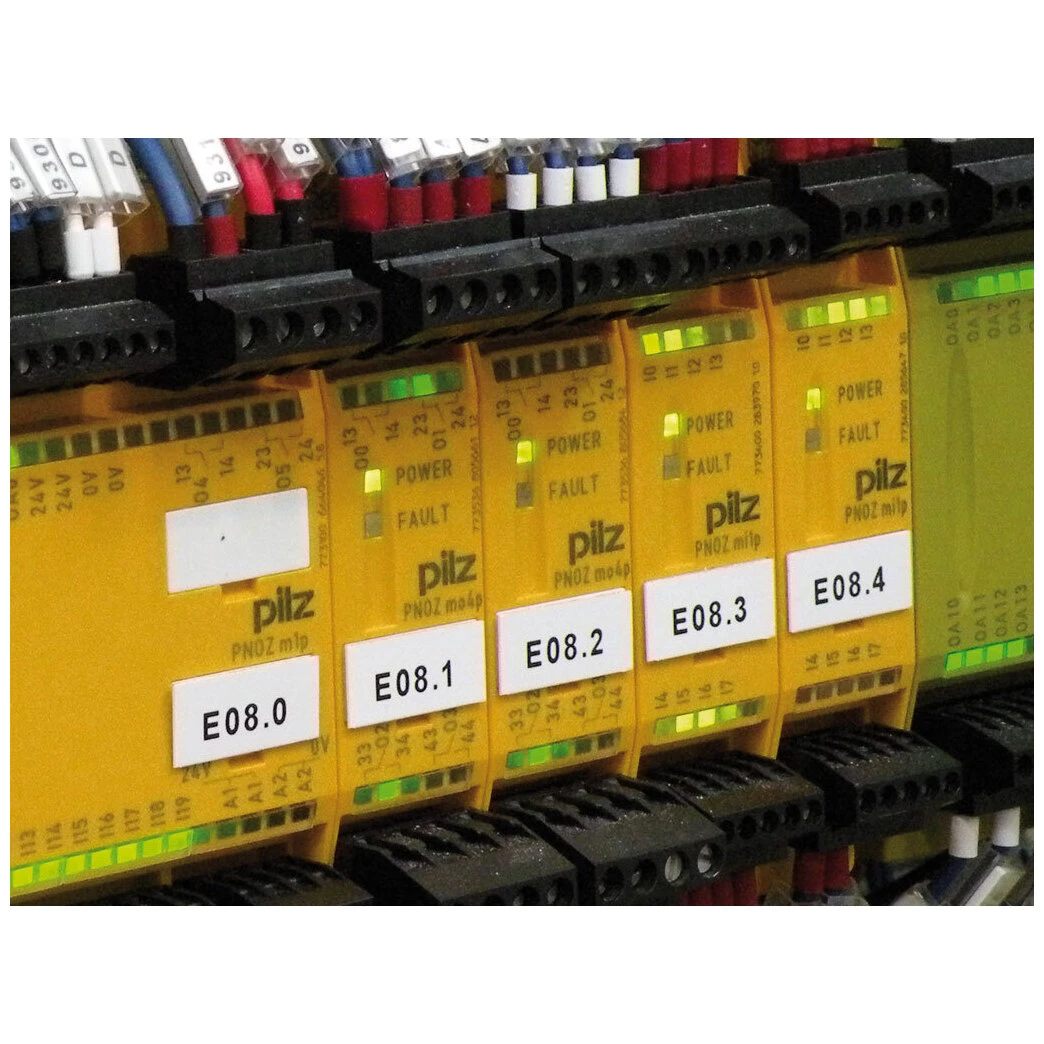 17x44mm White PVC Adhesive Legend · · · Material: Plasticised polyvinyl chloride · · -30°C to +60°C Temperature Range · · Silicon Free · · Self-extingushing Class V0 (UL 94) · · Material: Flat – 0,5mm · · Precut Labels