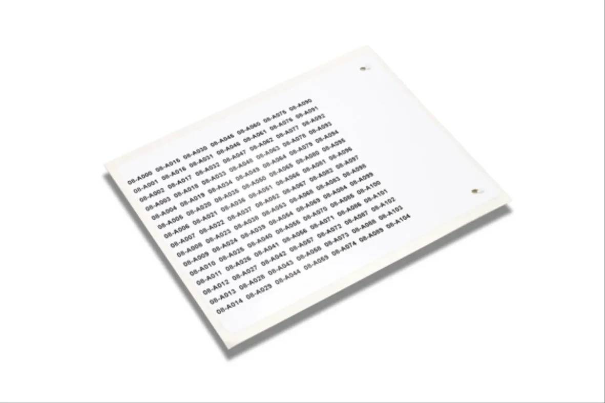 · · Self Adhesive Panel Plate · · Material: Polyester Film · · Silicon Free · · Operating Temperature Range: -40°C To + 130°C · · Application Temperature Range: +10°C To + 40°C · · Ul Approved · · Purchased in multiples of 6000 only