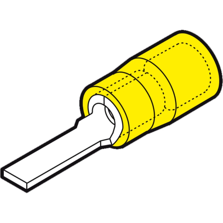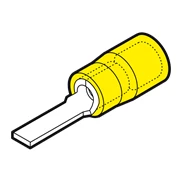 Technical Specifications  Technical Specifications Solderless copper terminals for copper conductors Flange shape Pin shape Sleeve form Short Material Copper Colour insulation Yellow Insulation PC Bolt dimension (metric) – Surface protection Tinned Max. current (Imax) – A Reel packaging No Nominal cross section 4 – 6 mm² For pull protected connections No Suitable for flat conductors No Suitable for high temperatures (to 650 °C) No Suitable for solid cores No Useful for stranded conductors Yes Suitable for fine strand conductors Yes Suitable for insulated varnish No Suitable for round conductors Yes