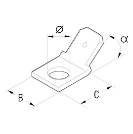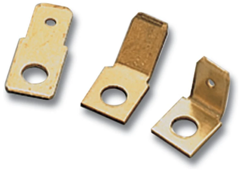 Male tab 6.3mm x 0.8mm tab size, tab angled at 45 degrees · · · Manufactured from Brass strip with a purity greater than 99.9% · · -40°C to +125°C Temperature Range