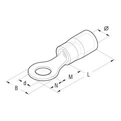 Technical Specifications Technical Specifications Solderless copper terminals for copper conductors Material Copper Sleeve form Short Colour insulation Blue Insulation PA Flange shape Ring shape Surface protection Tinned Bolt dimension (metric) 4 Max. current (Imax) – A Reel packaging No Nominal cross section 1.5 – 2.5 mm² Suitable for insulated varnish No For pull protected connections No Suitable for fine strand conductors Yes Suitable for round conductors Yes Suitable for flat conductors No Suitable for high temperatures (to 650 °C) No Useful for stranded conductors Yes Suitable for solid cores No