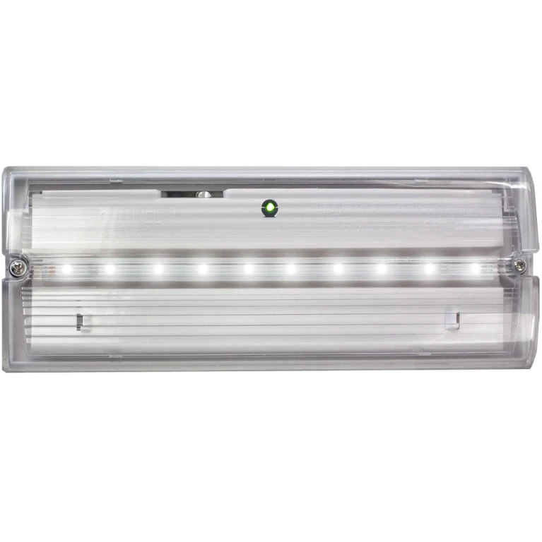 Channel Safety Systems E/ME/M3/LED/IP65 Meteor Bulkhead 3hrM Low Profile c/w 10 LED Array 3W 100x260mm IP65 · · · Product: Luminaire · · Type: Bulkhead · · Lamp Type: LED Fixed · · Mounting Position: Ceiling/Wall · · Cover Included: Y · · Cover Type: Diffuser · · Number of Lamps: 10 · · Wattage: 3 W · · Mounting Type: Recessed · · Ingress Protection: IP65
